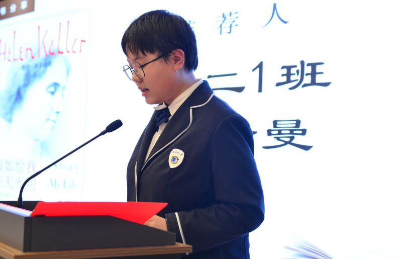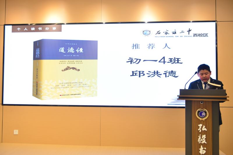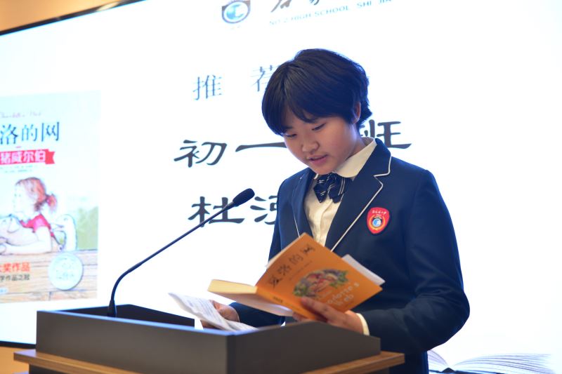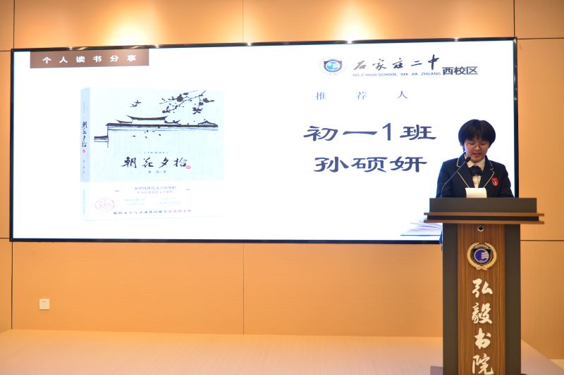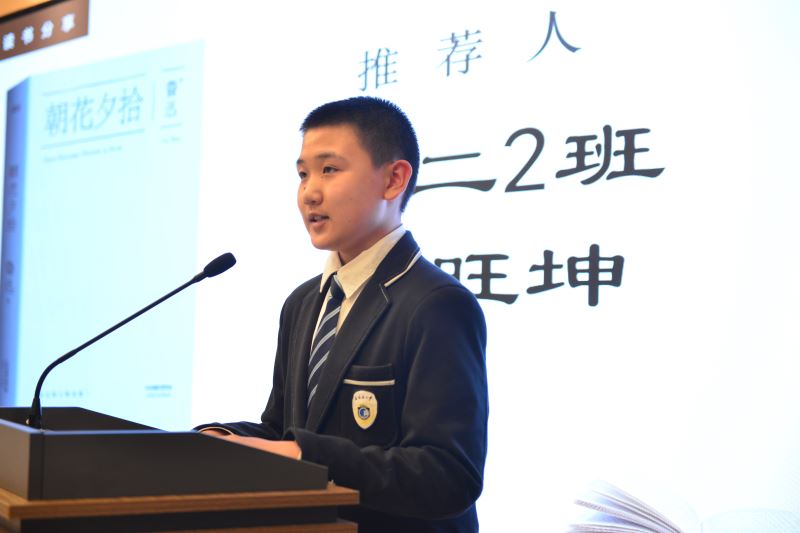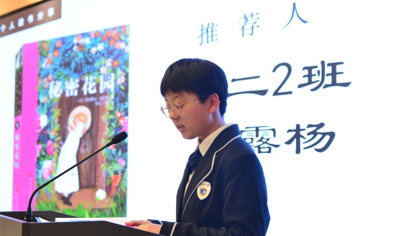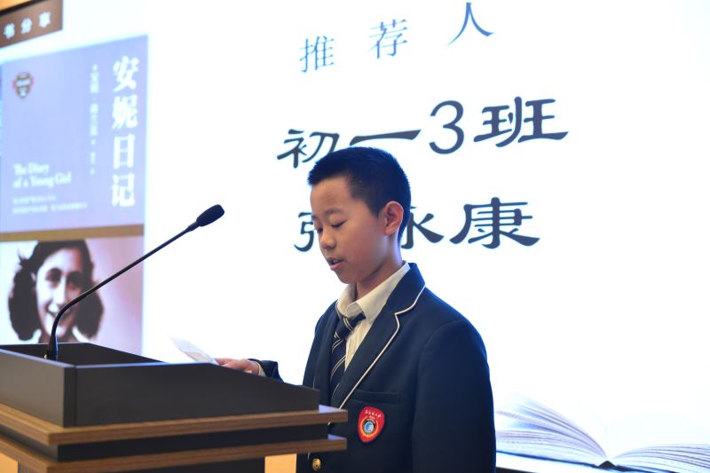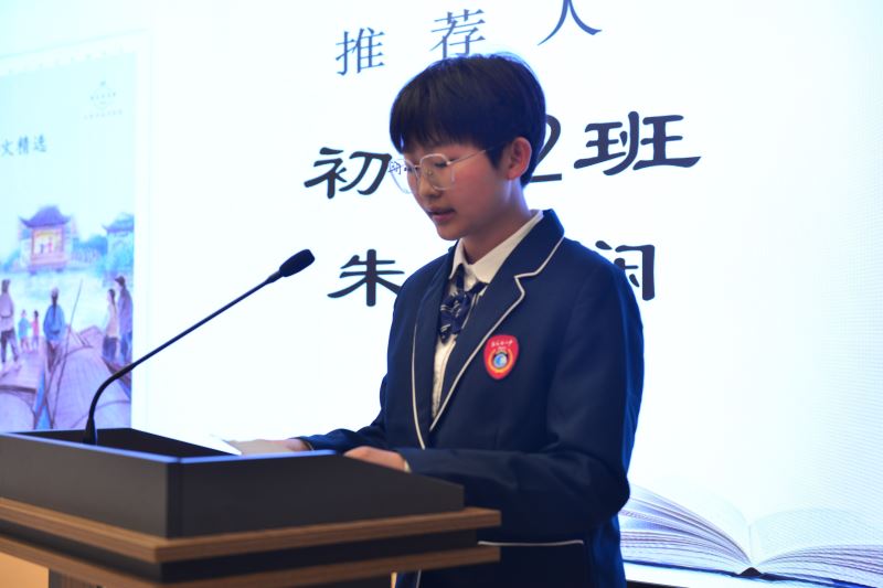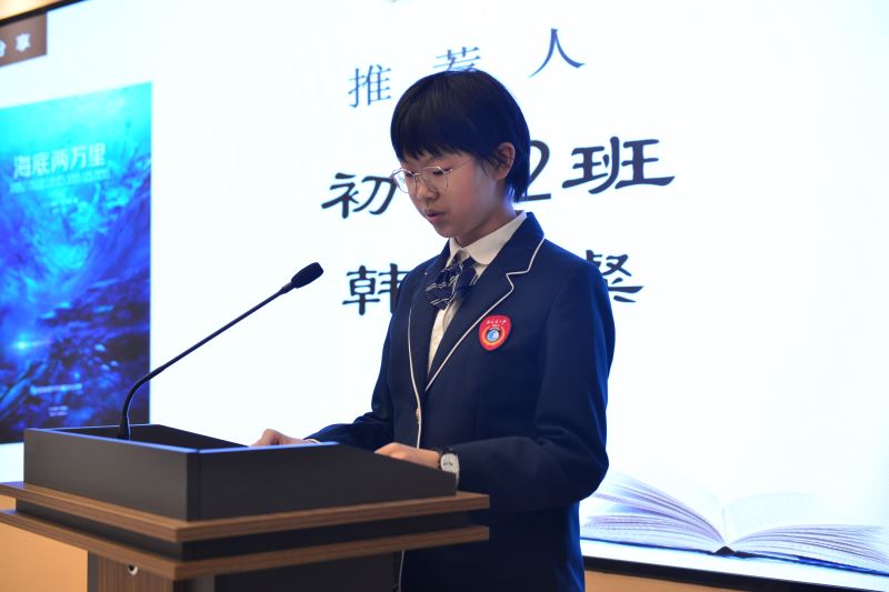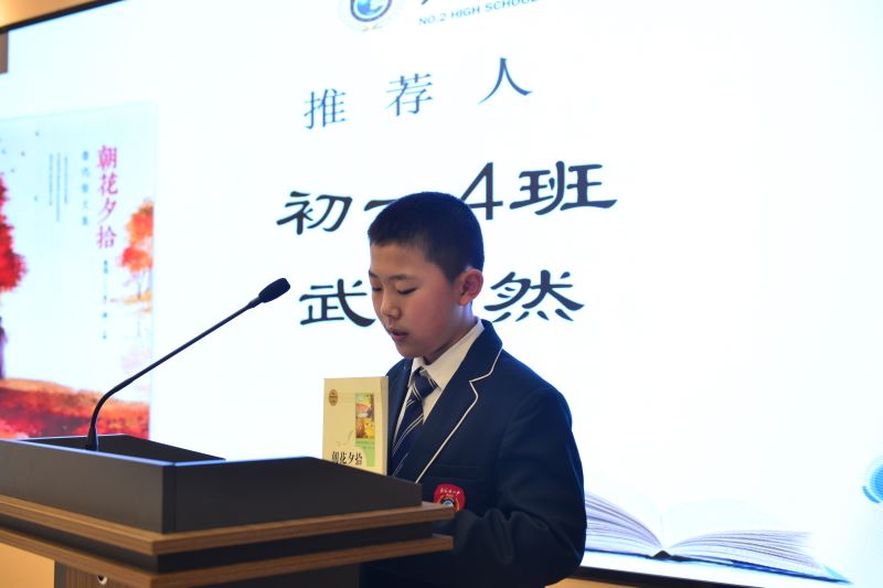 随后,初中部24位同学依次走上讲台进行读书分享。同学们在分享中将自己的读书经历娓娓道来,深情地讲述着他们和阅读的不解情缘,以及通过阅读带来的改变,让人感叹少年郎对于阅读的万分热爱。