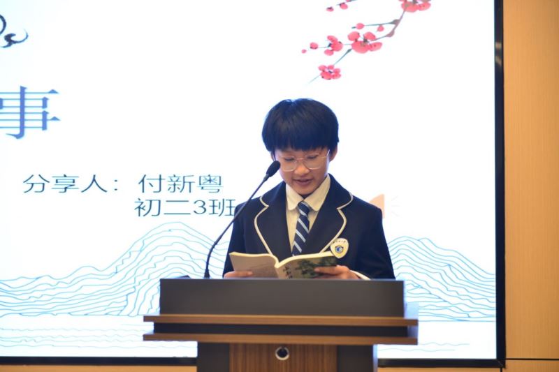 初二年级的12名选手参加了“声韵传情·弘毅致远”经典诵读比赛,小选手个个声情并茂,深情演绎。