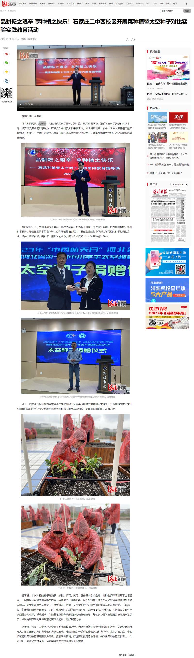 品耕耘之艰辛 享种植之快乐!石家庄二中西校区开展菜种植暨太空种子对比实验实践教育活动_河北新闻网 (hebnews.cn)
