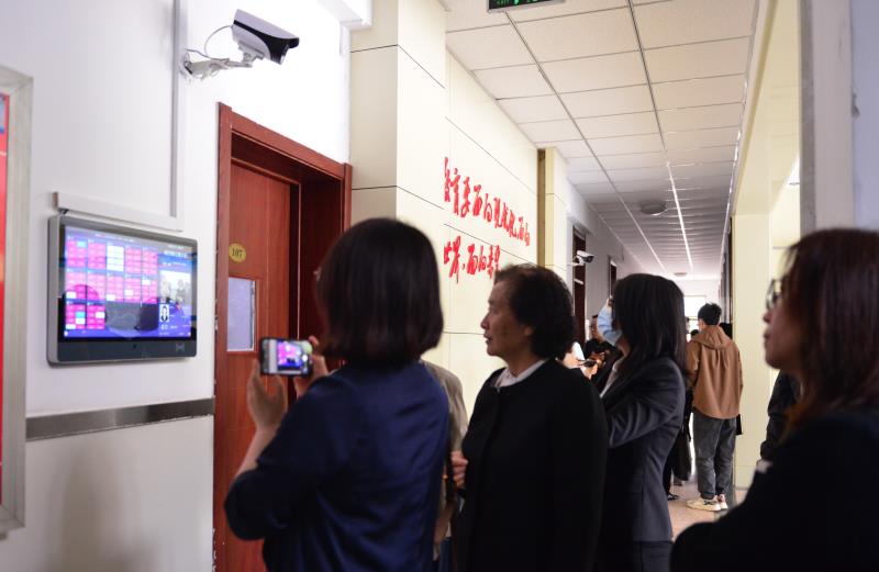 随后,与会代表参观了学生宿舍,大家对学校电子班牌、宿舍归寝和电子门禁的智慧校园系统显示出了极大的兴趣。