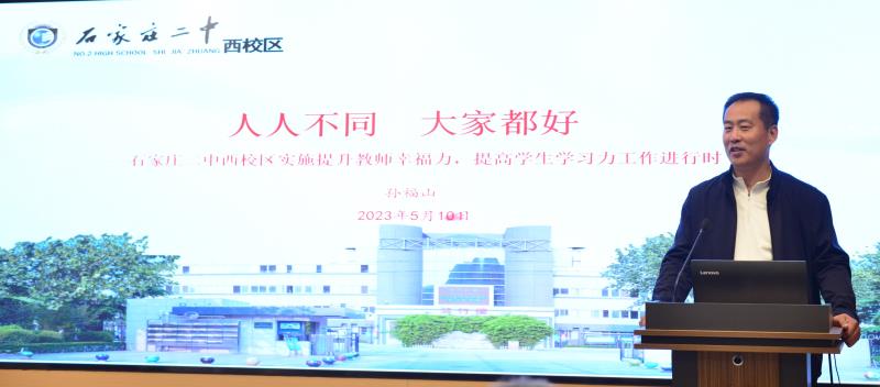 接着,孙福山书记以“人人不同,大家都好”为题做主题报告。孙书记从提升教师的幸福力和学生的学习力两个维度介绍了办学思想,阐述了学校的价值追求定位、战略规划、管理架构。二中西校区十年三步走的战略规划以及学校“双力”建设的行动哲学给参会老师留下了深刻的印象。