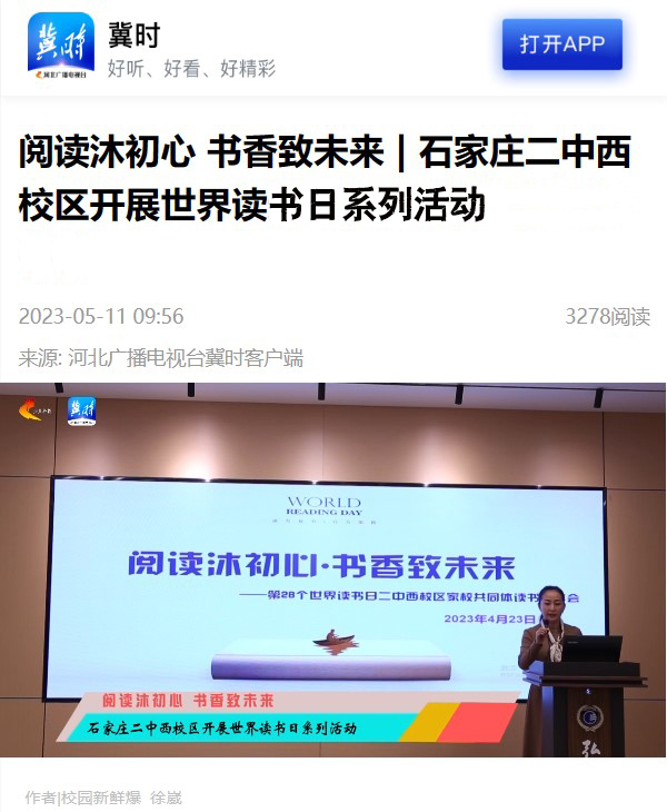 阅读沐初心 书香致未来 | 石家庄二中西校区开展世界读进石豕庄市桥西外国语小字 (hebtv.com)
