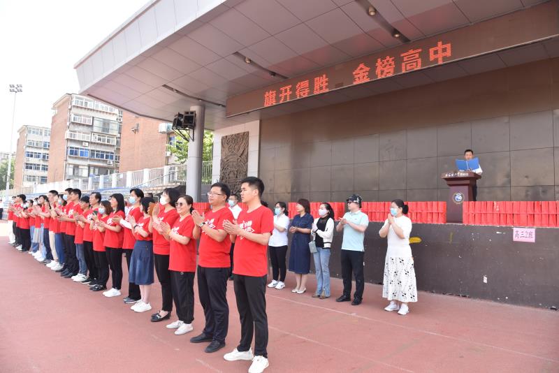 齐聚操场举行了一场特别的升旗仪式,全体高三教师也着一身红袍给高三学子助威加油!!