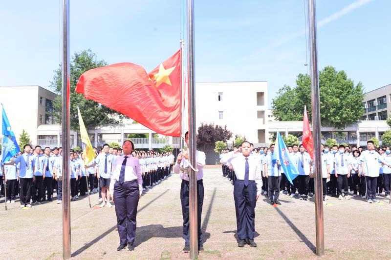 国歌雄壮、五星红旗冉冉升起、高高飘扬,高三各班班旗迎风招展仿佛战旗烈烈,气势非凡!母校为学子们壮