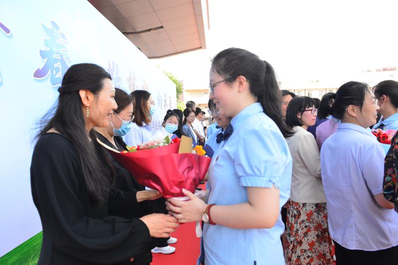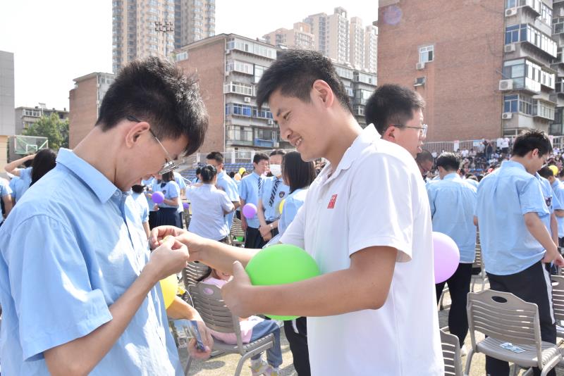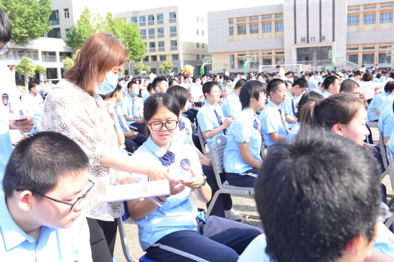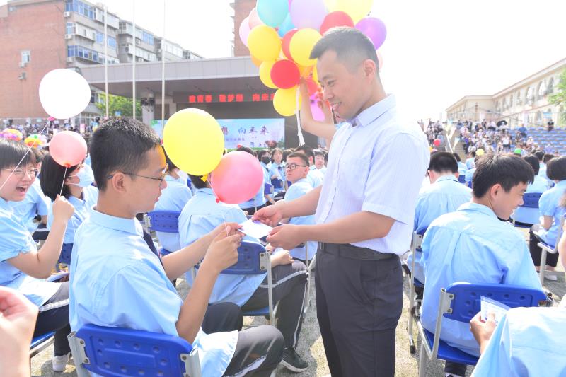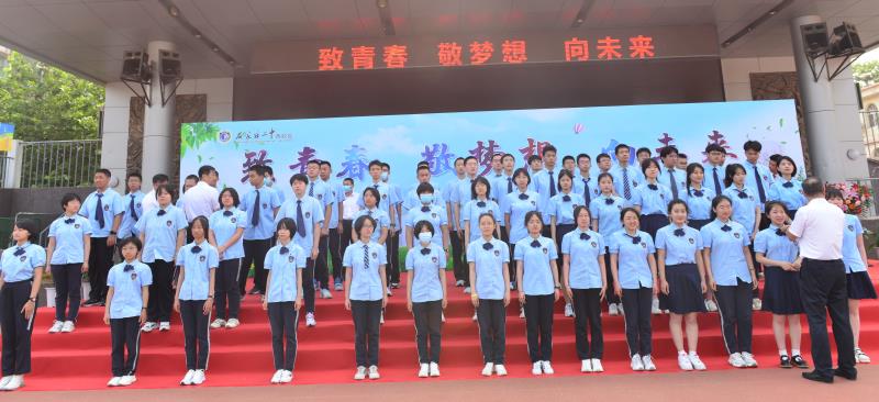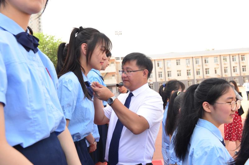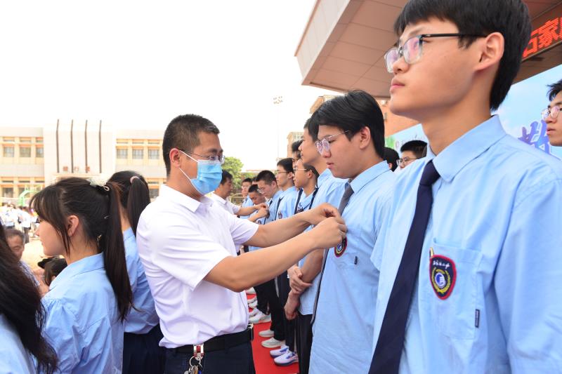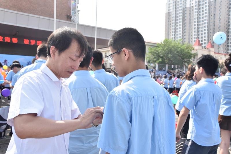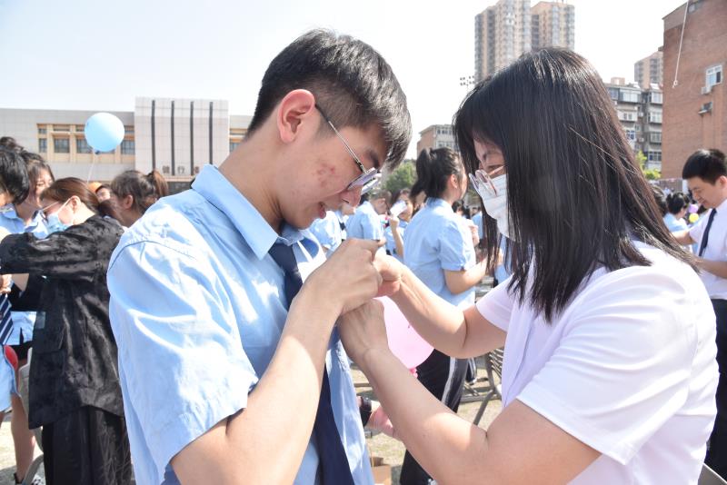 校领导和毕业班老师为同学们佩戴毕业纪念章