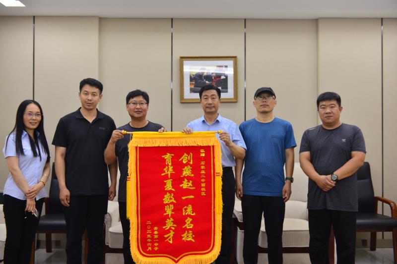 会后,吕主任代表青县一中向石家庄二中西校区赠送锦旗表达感谢,对西校区的硬件设施、学校管理、教学工作、自主科研、学科建设、人才培养、校园文化建设等方面都给予了高度评价和赞赏,双方共同表示希望未来两校能继续加强沟通交流、相互学习、推动校校合作。