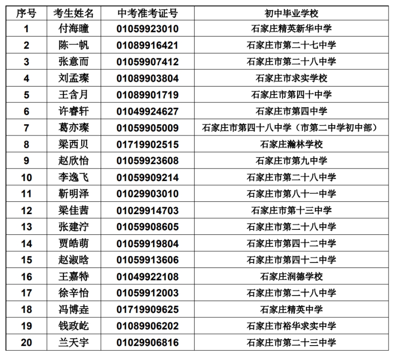 石家庄二中西校区(五中)2023年自主招生拟录取名单公示