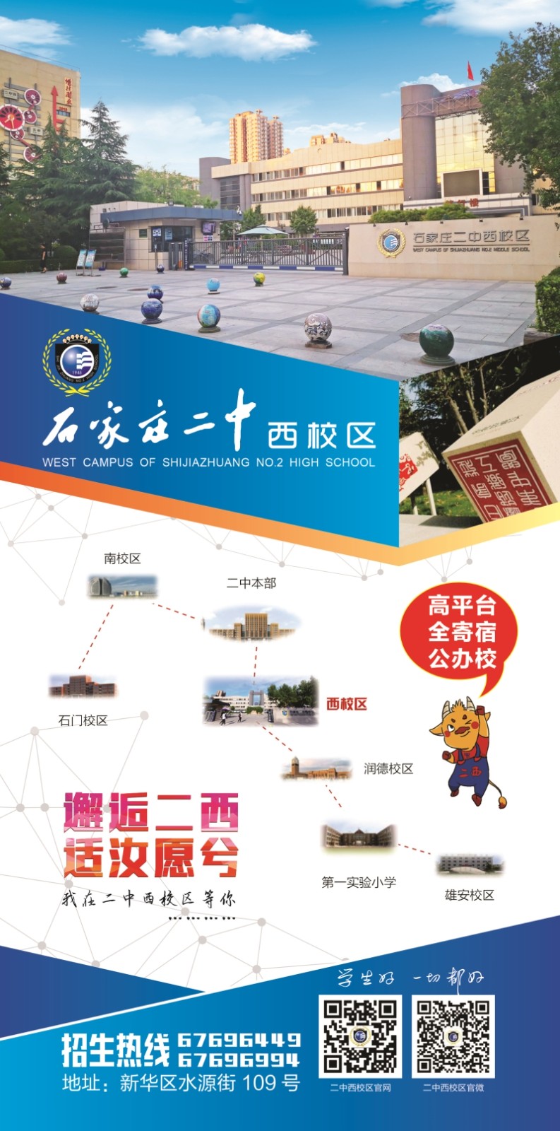 | 地址: | 石家庄二中西校区位于石家庄市新华区水源街109号 乘坐11、75、68路公交车到合作路东口站下车即到。 |