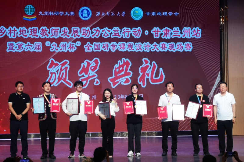 8月9日——13日,由《中学地理教学参考》编辑部、《地理教学》编辑部、地理学会联合举办的第六届“九州杯”全国研学课程设计大赛现场赛在兰州举行,我校潘力强、杨俊巧、刘俊燕、刘建炜、吴会玲5位地理名师工作室成员参赛并获团体特等奖,赢得殊荣。