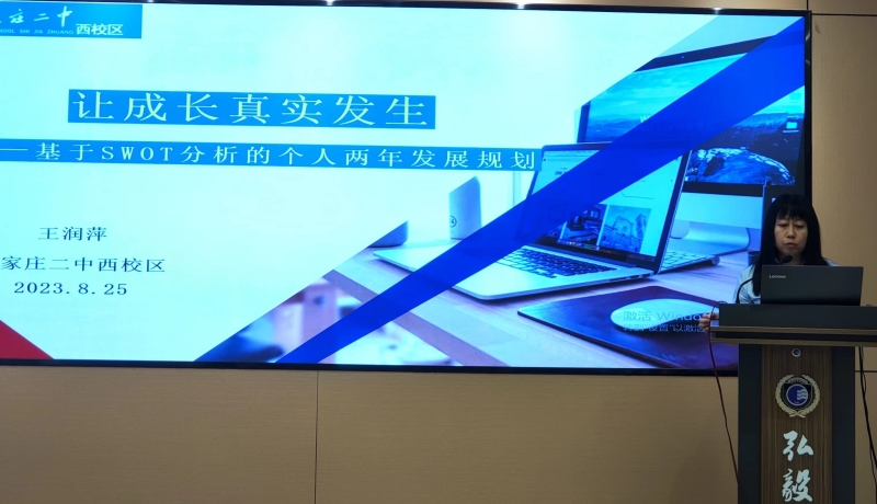 个人发展与学校发展是息息相关的,个人应该在学校发展规划里找到自己的定位,学校质量跃升也有赖于个人的发展提升。围绕如何找到个人和学校工作的融合发展点,此次培训分别从制定个人发展规划和工作规划两个方面着手,指导中层干部将个人发展融入学校高质量发展的进程之中。此次培训先由校学术委员会会长、石家庄市领航教师王润萍为中层干部做《让成长真实发生——基于SWOT分析的个人两年发展规划》专题讲座,王主任从理论依据到工具运用引导中层干部做好个人规划。