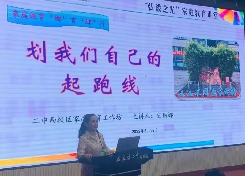 本期讲座由二中西校区初中部史丽娜主任担任主讲,主题为《划我们自己的起跑线》,分享了科学的家庭教育指南,帮助各位父母更新科学教育理念。