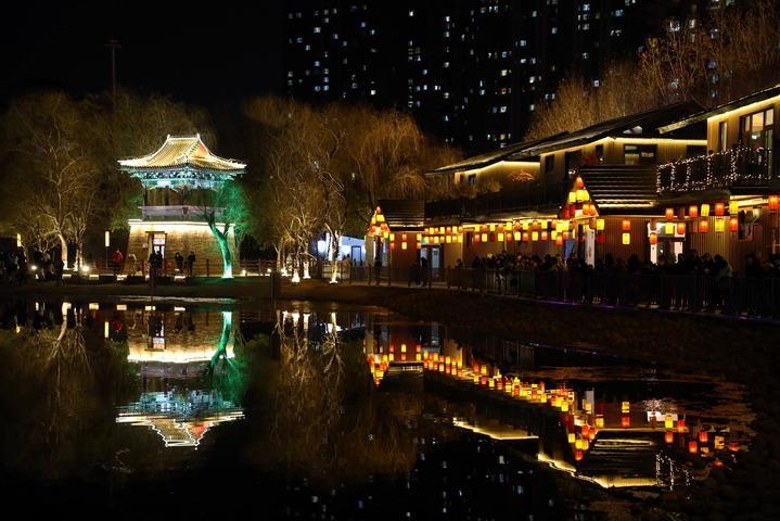 这是2月1日拍摄的河北省石家庄市栾城区古栾水镇夜景。新华社记者 骆学峰 摄