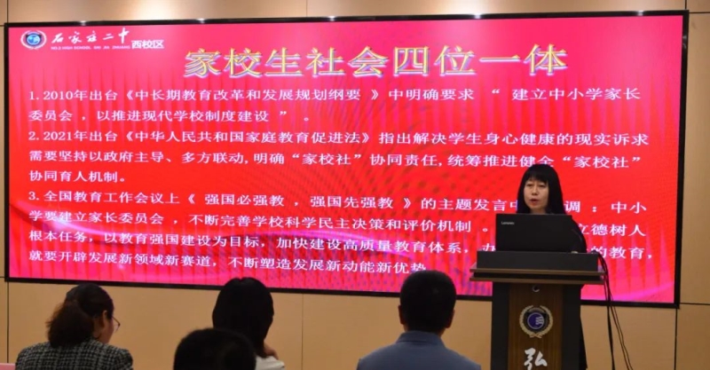 国运兴衰,系于教育;教育振兴,全民有责。2023年9月28日下午,石家庄二中西校区家校共育研究中心在弘毅书院报告厅组织召开了第六期“家校共育面对面”活动暨本学年第一次高中年级家委会成员会议,致力于打造打造家-校-生-社会四位一体的共赢模式。