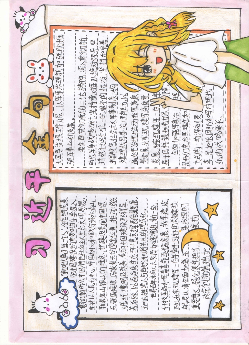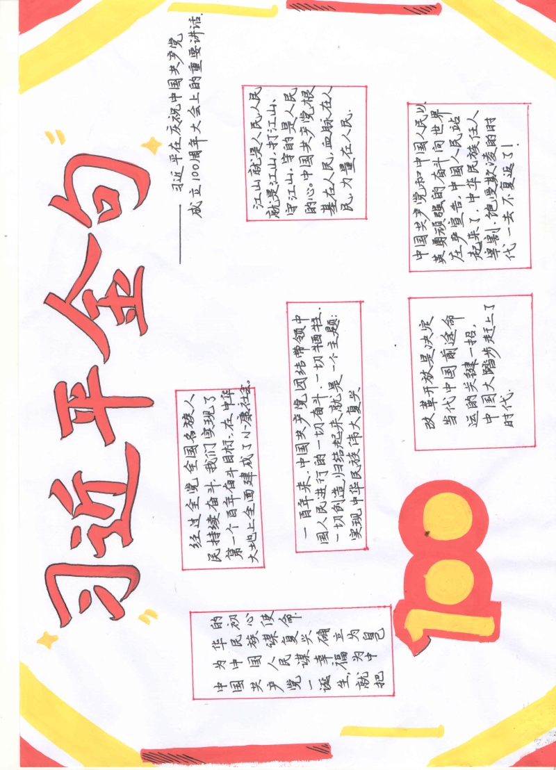 言以立心,品味思想的光芒;文以咏志,感受真理的力量。为深入学习贯彻习近平新时代中国特色社会主义思想,不断用心用情体会和领悟习近平总书记重要讲话金句丰富的精神内涵,引导学生积极学习党的创新理论,弘扬中华优秀传统文化,传承红色基因,系好人生的第一颗纽扣,让革命的薪火代代相传,石家庄二中西校区政治组特别组织了这次初中手抄报展评活动。