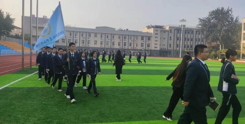 高一年级各位班主任带领着同学们徒步至二中本部校区,途中队伍纪律严明、秩序良好,充分展现了西校区学生昂扬向上的精神面貌。