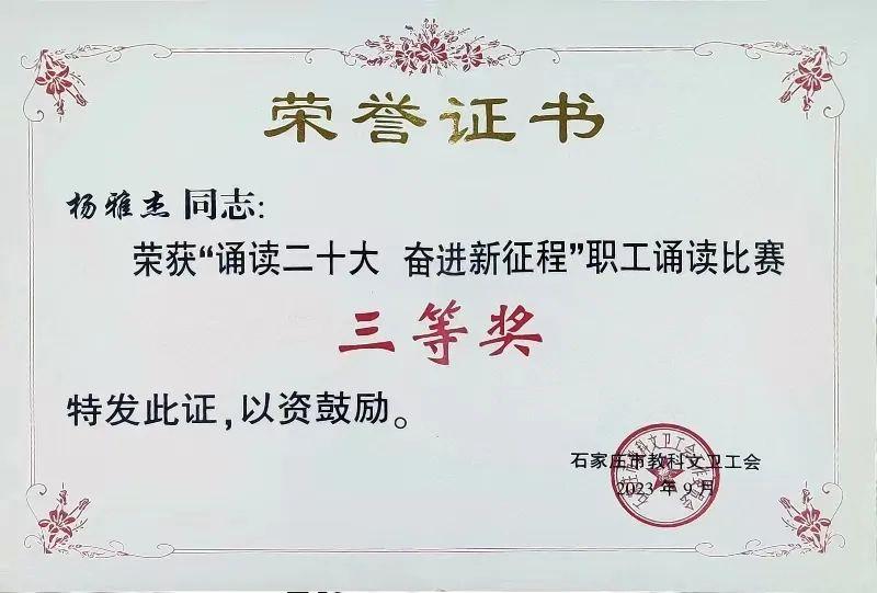 喜报| 二中西校区杨雅杰老师在全市职工诵读比赛中获奖