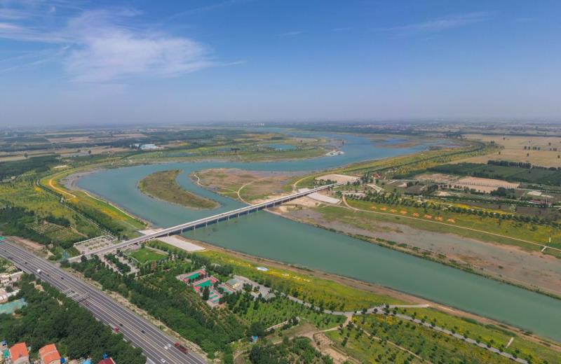滹沱河石家庄藁城段(2023年6月1日摄,无人机照片)。新华社记者 朱旭东 摄