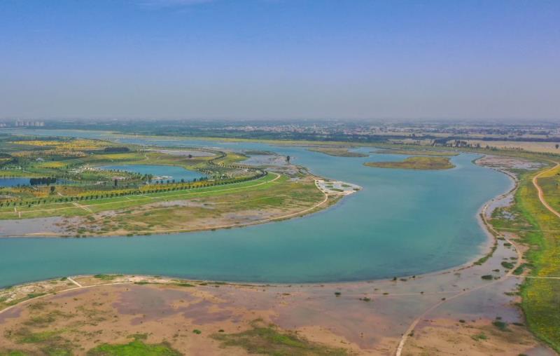 滹沱河生态修复工程石家庄藁城段廉州湖(2023年6月1日摄,无人机照片)。新华社记者 朱旭东 摄