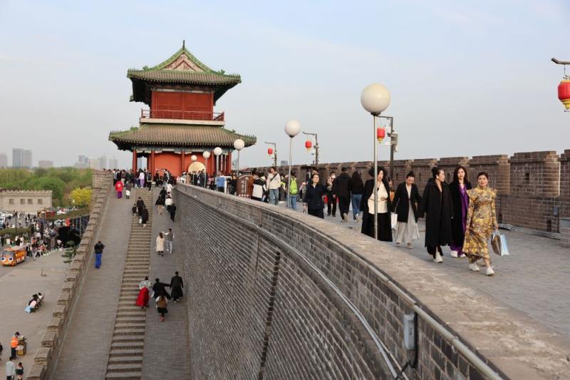 游客在石家庄正定古城游览(2023年4月15日摄)。新华社记者 朱旭东 摄