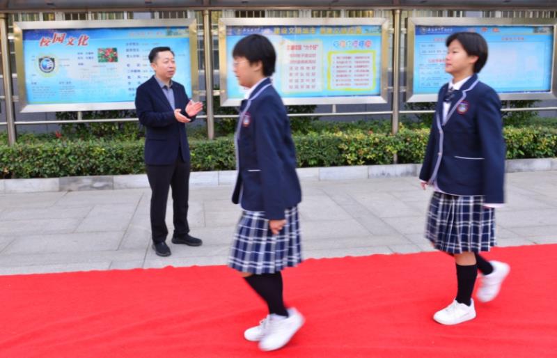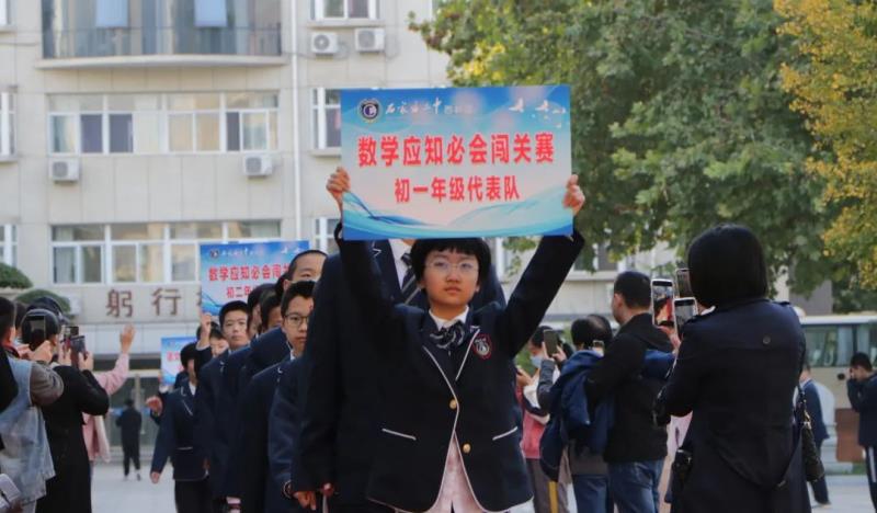 初一年级彭书静主任宣读比赛规则、李建鹏副校长宣布决赛开幕后,两个年级、十个项目的参赛学生排成整齐的队列,十四支雄姿英发、气宇轩昂的学生队伍昂首阔步、迈上红毯、走向赛场。