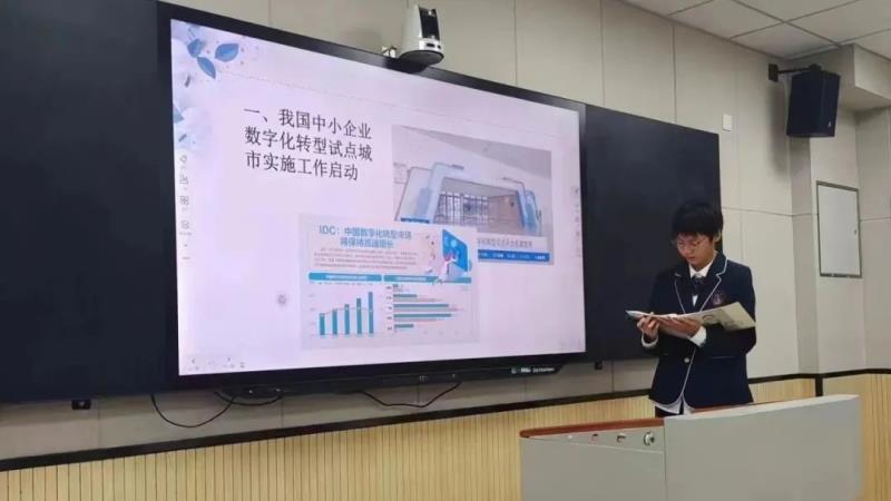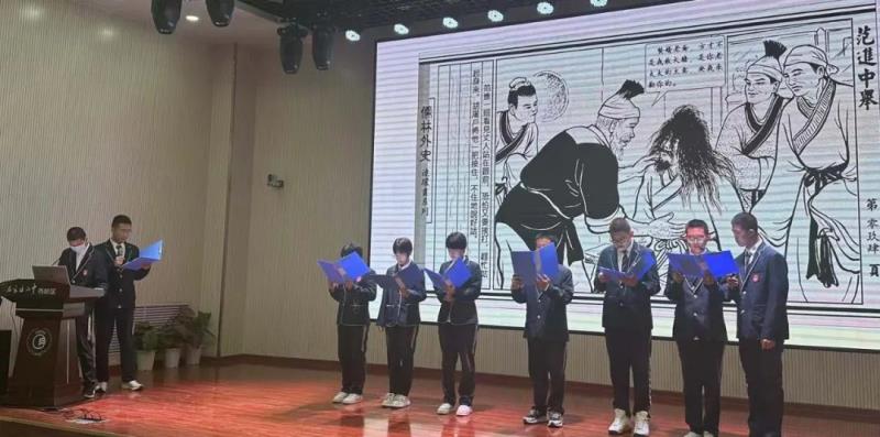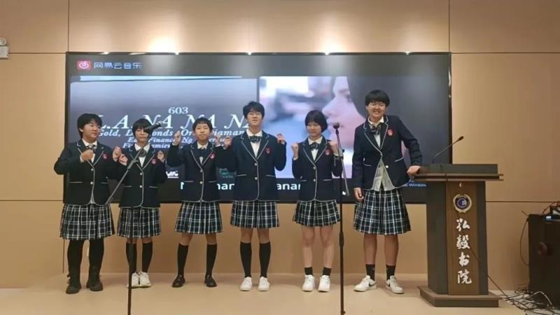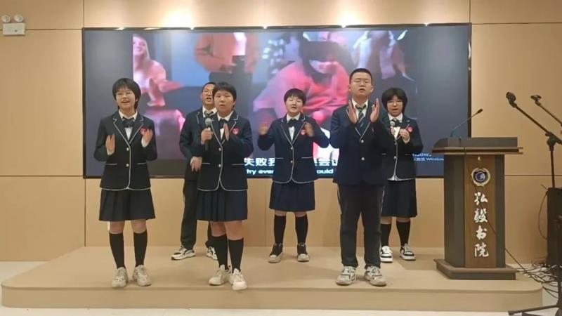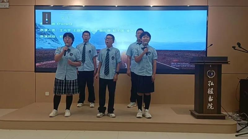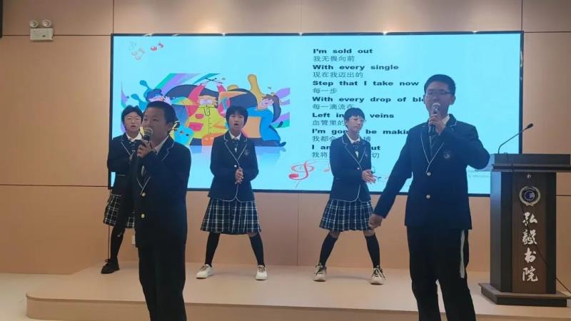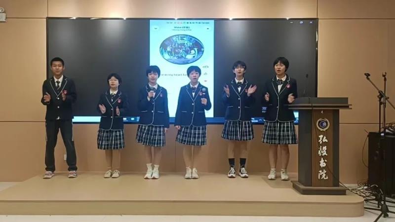 语文分角色朗读、历史成语故事演讲、时政播报、放飞青春英文歌大赛四个项目分别在报告厅、生涯规划教室、录播教室、弘毅书院四个会场展开了现场角逐。参加其他项目的同学们、家长代表们分别观摩了这四个决赛项目。同学们准备充分、表现出色,赛出了水平,赛出了风格。