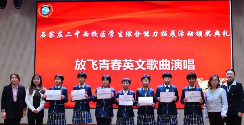 各学科教师为初二年级各项目一、二、三等奖颁奖