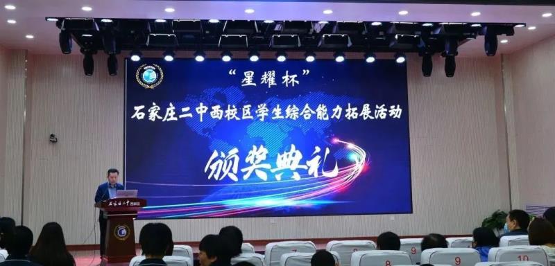赛程全部结束后,经过紧锣密鼓的分数核算,初一、初二年级参赛的同学们齐聚报告厅,参加随后举行的“星耀杯”学生综合能力拓展项目颁奖仪式。