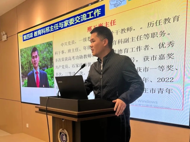 教育科邢玉彬主任就常规工作与家委们进行了交流,他号召高一年级的新家委们积极参加家长读书会活动,树立正确的育儿观,以成长带动成长,与孩子共进步。