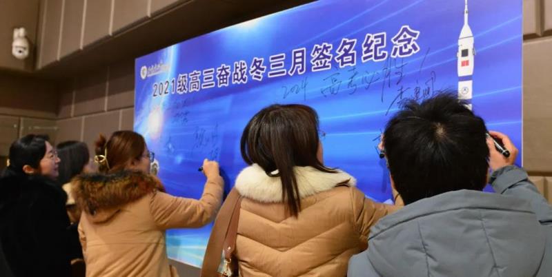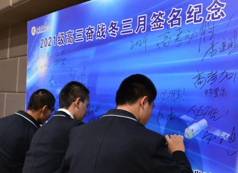 同学们分班走向签字纪念板,郑重签名。同学们签下的每一笔,是一份庄重的承诺,更是奋战到底的决心和信心。