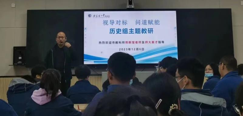 “切磋琢磨方成玉,扬帆起航正当时”。为推进“双新”实施背景下高效课堂的构建和高效备考,助力历史教师专业成长,2023年12月6日上午,省历史学会教育分会副秘书长、石家庄市教科所历史教研员邢新宝老师携河北师大研究生一行共14人莅临石家庄二中西校区进行专业指导。