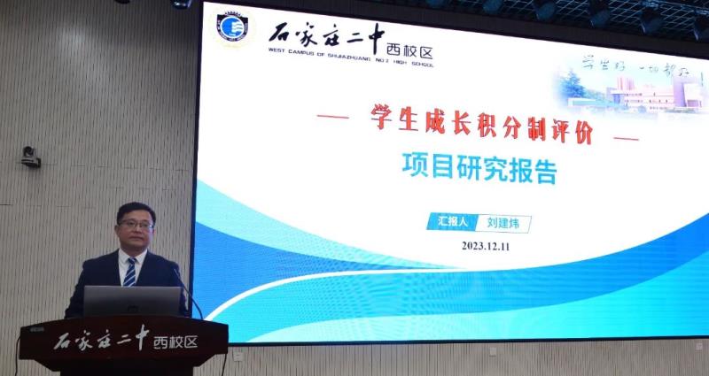 教育科刘建炜主任为来宾做《学生成长积分制评价项目研究报告》主题汇报