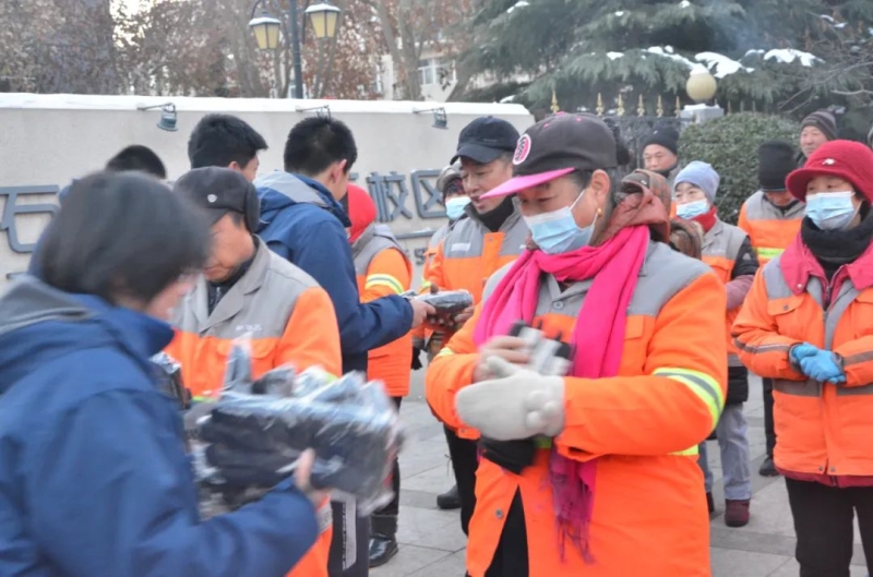 环卫工人是城市的美容师,他们为这座城默默无闻地奉献着自己的力量,志愿者们代表石家庄二中西校区,向他们表达了诚挚的感谢,在这个寒冷的冬天,暖身的手套和暖心的豆浆是学生们珍贵的礼物。