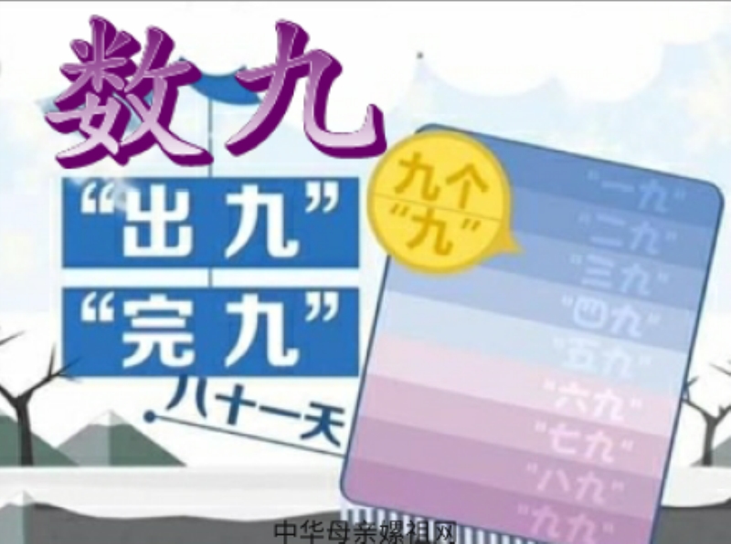 时至冬至,标志着即将进入寒冷时节,民间由此开始“数九”计算寒天,也就是人们常说的“进九”和“数九寒天”了。所谓“数九”,即是从冬至逢壬日算起(亦有说法从冬至算起),每九天算一“九”,依此类推;数九一直数到“九九”八十一天,“九尽桃花开”,此时寒气已尽 。九天为一个单位,谓之“九”,过了九个“九”,刚好八十一天,即为“出九”或“完九”。从“一九”数到“九九”,冬寒就变成春暖了。