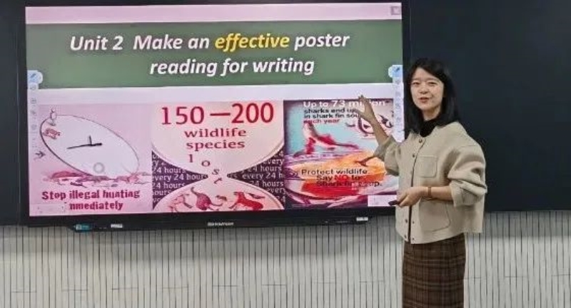 石家庄市第十七中学孟凡亮老师对“选必一Unit4 Workbook Reading&Writing”进行了说课。孟老师在课堂设计中主动创设学习情境,引导学生观察现实生活中动物的肢体语言,帮助学生积累话题词汇,积极表达输出。