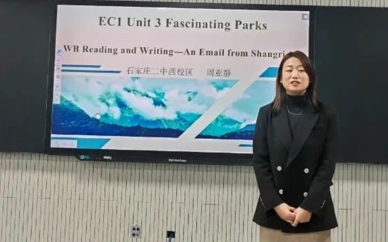 石家庄二中西校区周亚静老师对“选必一Unit3 Workbook Reading&Writing”进行了说课,周老师讲述了自己如何通过在课上引导学生通过阅读,思考,对比,探究和应用,最后达到语言输出的学习目标。