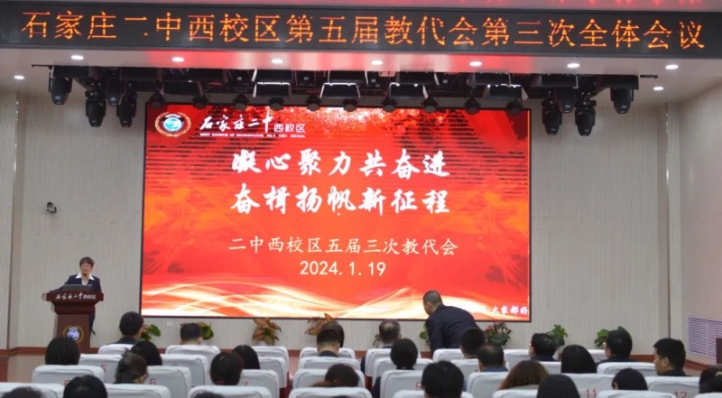 2024年1月19日,二中西校区五届教职工代表大会第三次全体会议隆重召开,工会查利主席主持大会。