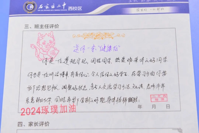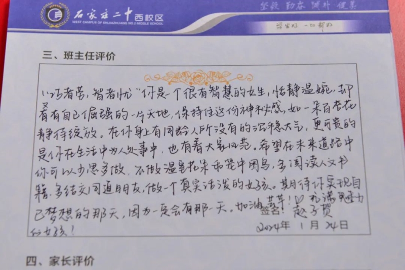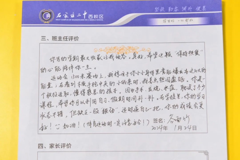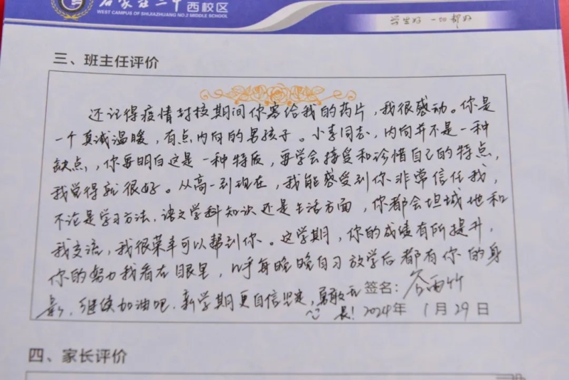 期末评语,不仅是一份礼物,更是一次教育的契机,是学生心灵的航标。评而有度,语而有温。二中西校区的班主任们用爱意和真诚记录着学生们成长中的点点滴滴。