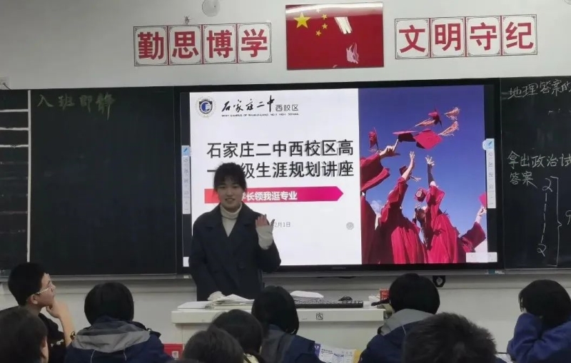 2024年2月1日晚7点,石家庄二中西校区为高一年级同学举办了一场别开生面的生涯规划活动——"学长领我逛专业"。