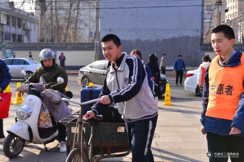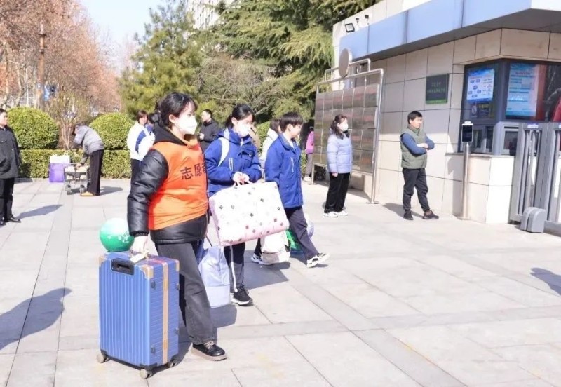 志愿者们穿着统一的服装,热情地帮助返校的高中住宿生搬运行李,学校的温情与关爱让他们心怀感恩,满怀欣喜地投入到新学期生活中。
